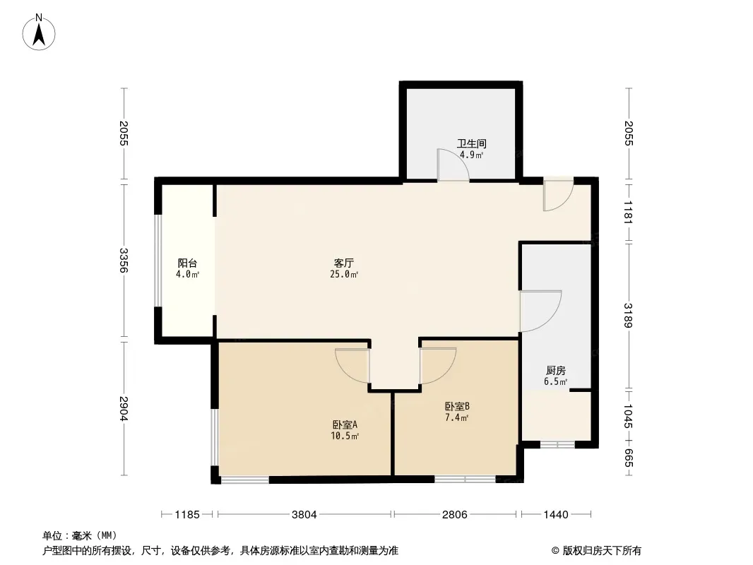 户型齐全,主打明卫,客厅朝南,主卧朝南二居