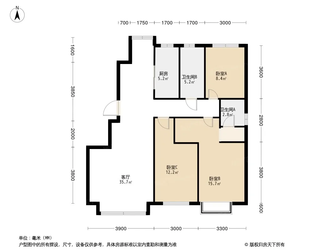 户型齐全,主打南北通透,全明格局,客厅朝南三居