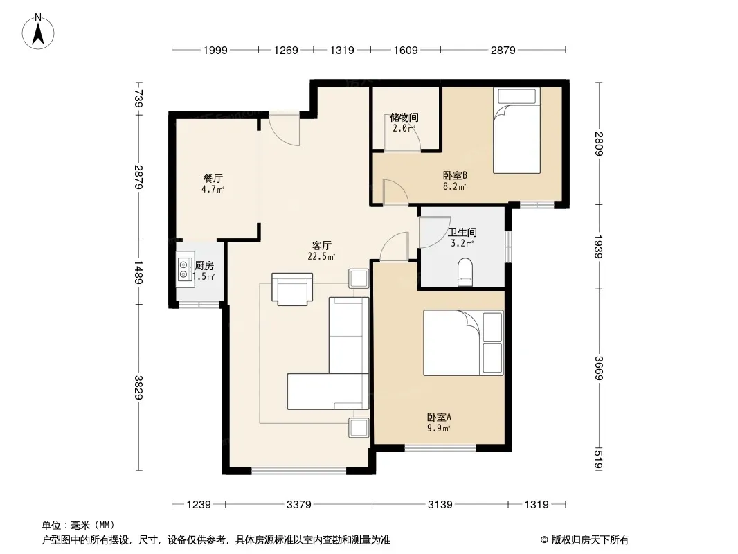 户型齐全,主打户型方正,明卫,客厅朝南,双卧朝南,主卧朝南二居