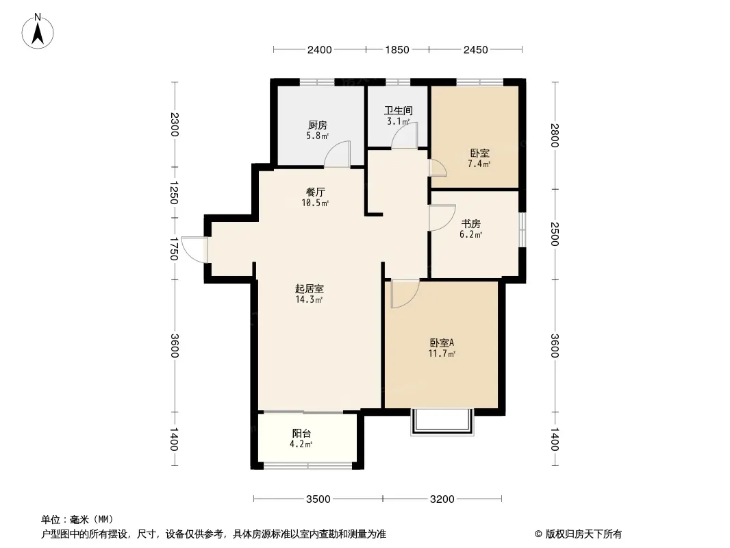 户型齐全,主打南北通透,户型方正,三开间朝南三居