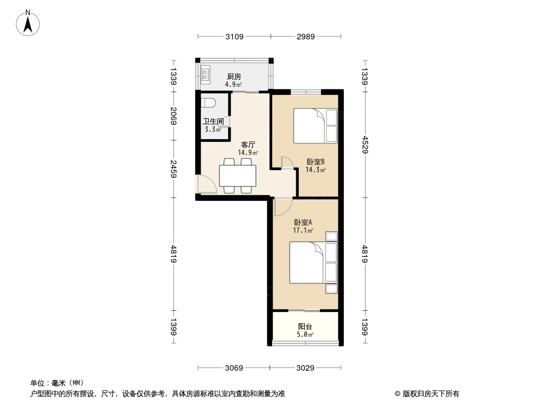 户型齐全,主打客厅朝南二居