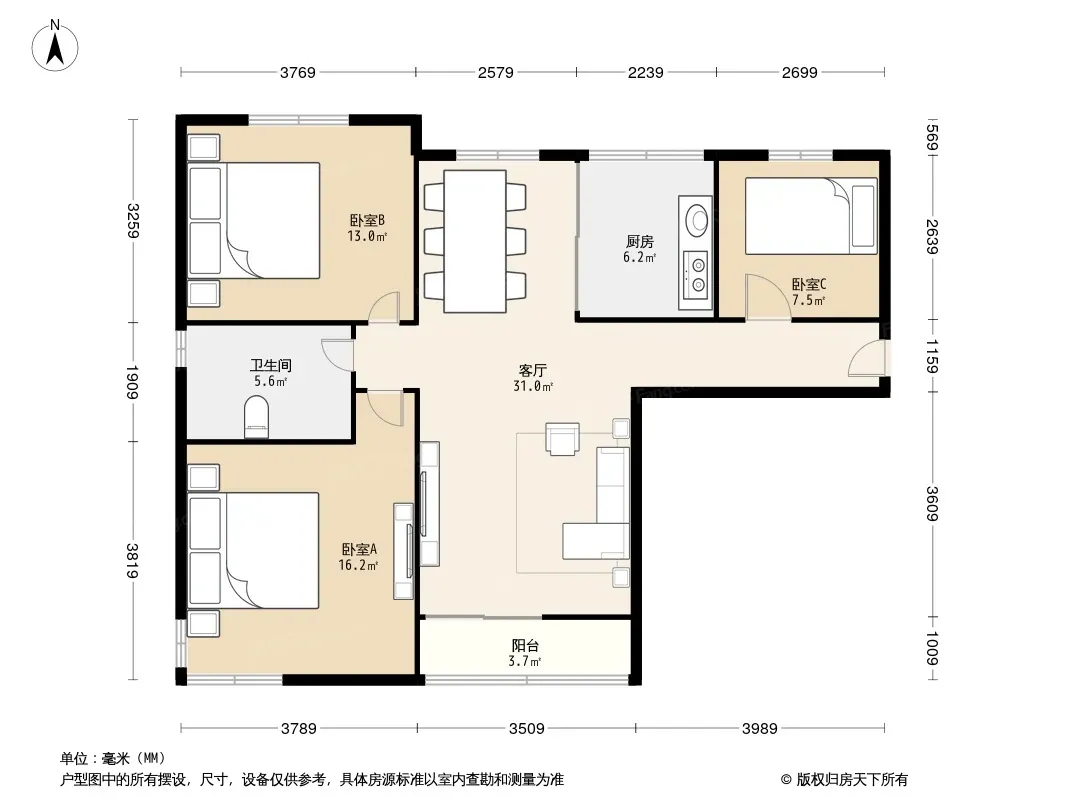 户型齐全,主打南北通透,主卧带卫,独立餐厅三居