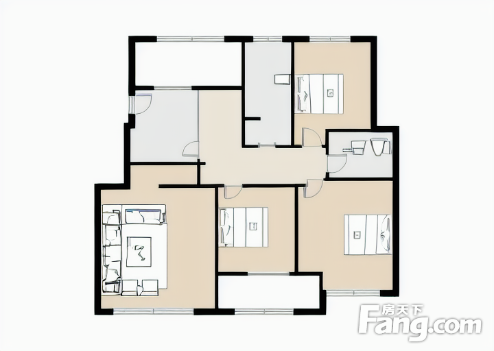 户型齐全,主打户型方正,明卫,明厨,客厅朝南,主卧朝南三居