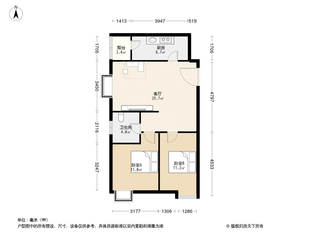 户型齐全,主打户型方正,明卫,客厅朝南,双卧朝南二居