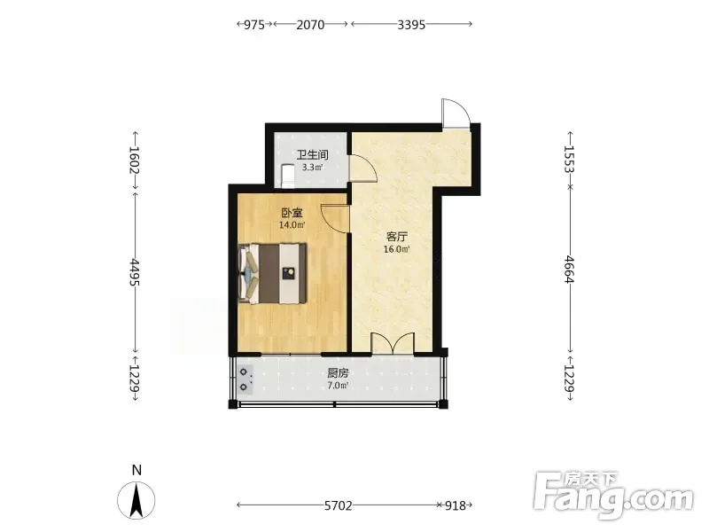此房正规一室一厅一卫 卧室是标准房间带阳台 ,厨房卫生间都很方正,整齐布局合理,无浪费面积,住着舒服。产权清晰
