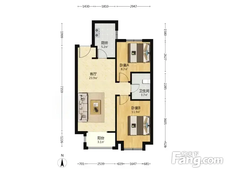 户型齐全,主打南北通透,全明格局,户型方正,客厅朝南三居