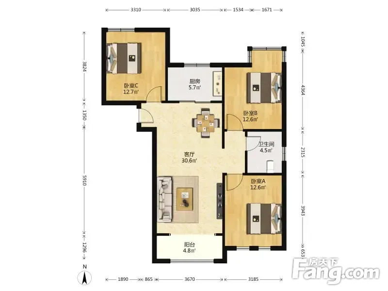 3室2厅1卫