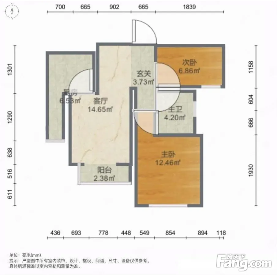户型齐全,主打明卫,双卧朝南二居