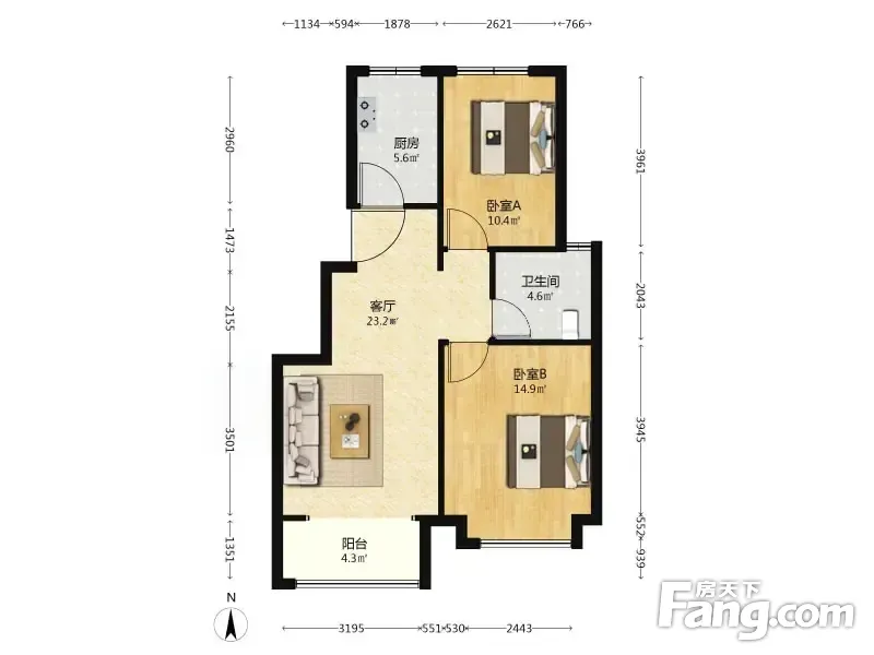 新城中梁长风雅著 2室1厅 南