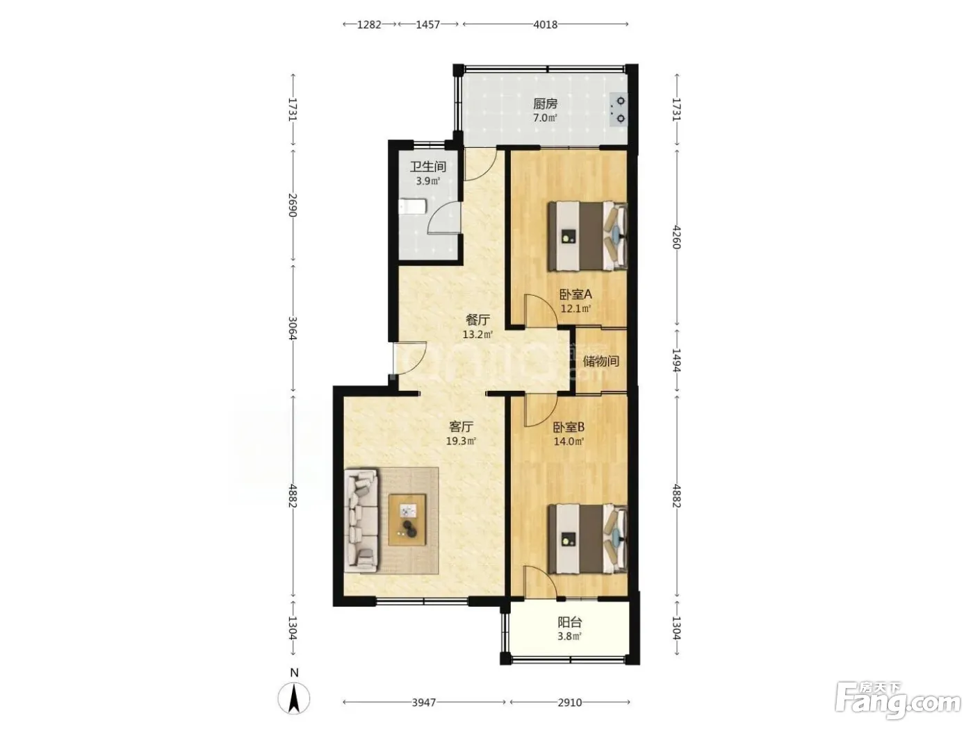 户型齐全,主打户型方正,明卫,明厨,客厅朝南,主卧朝南三居