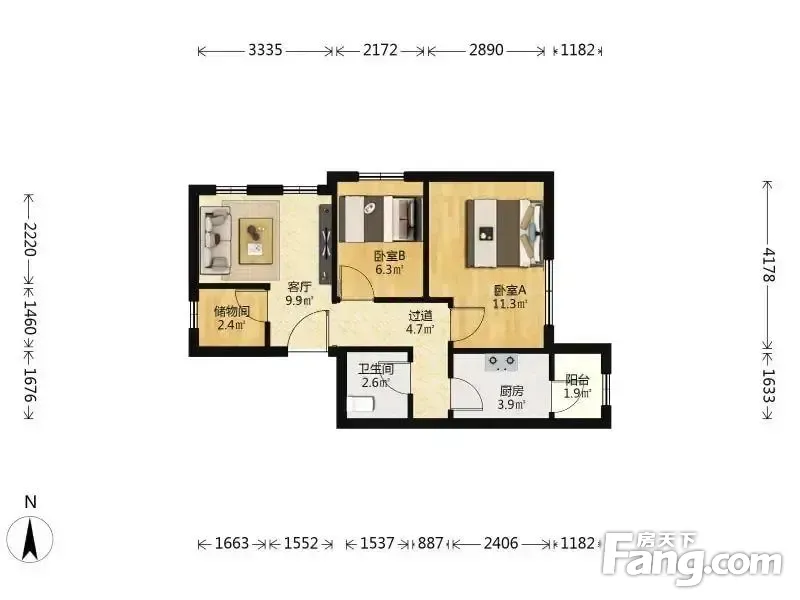 惠众家园 2室1厅 西北