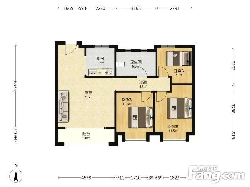 3室1厅2卫
