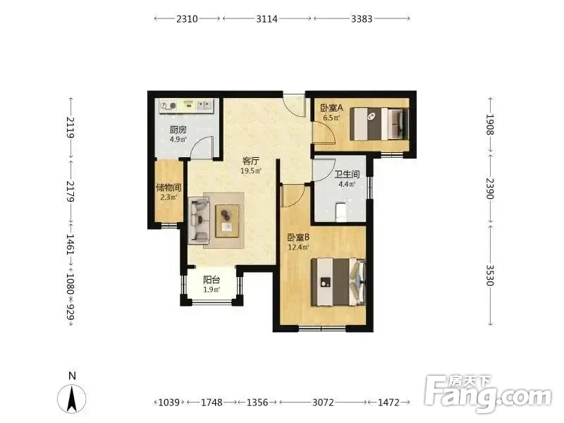 户型方正 分区分明 明厨明卫 采光超好 没有浪费面积