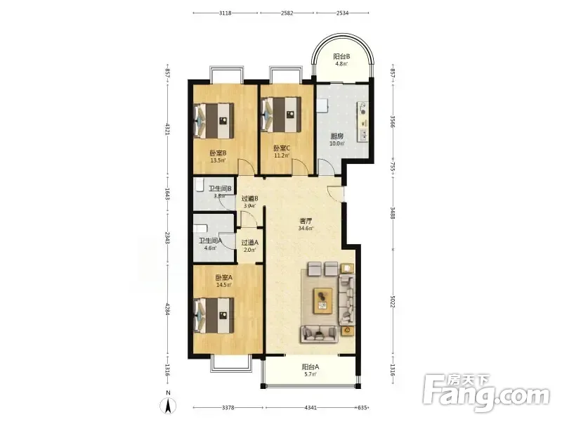 名仕达花园 3室2厅 南 北