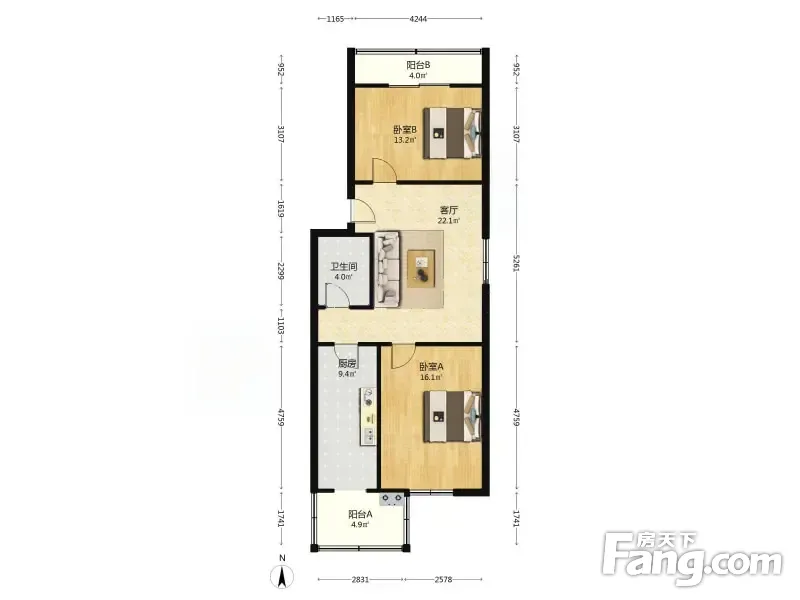 户型齐全,主打客厅朝南,双阳台二居