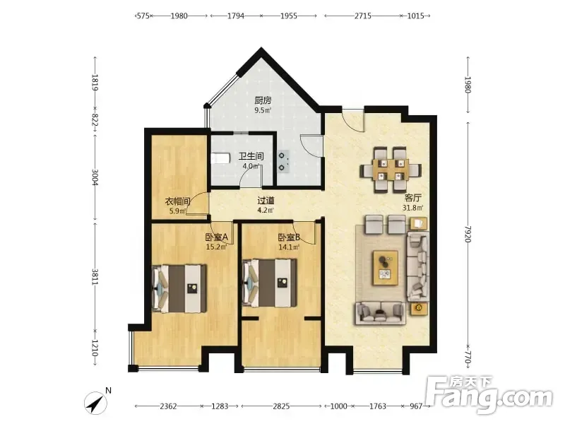 户型齐全,主打户型方正,明卫,客厅朝南,双阳台,主卧朝南二居