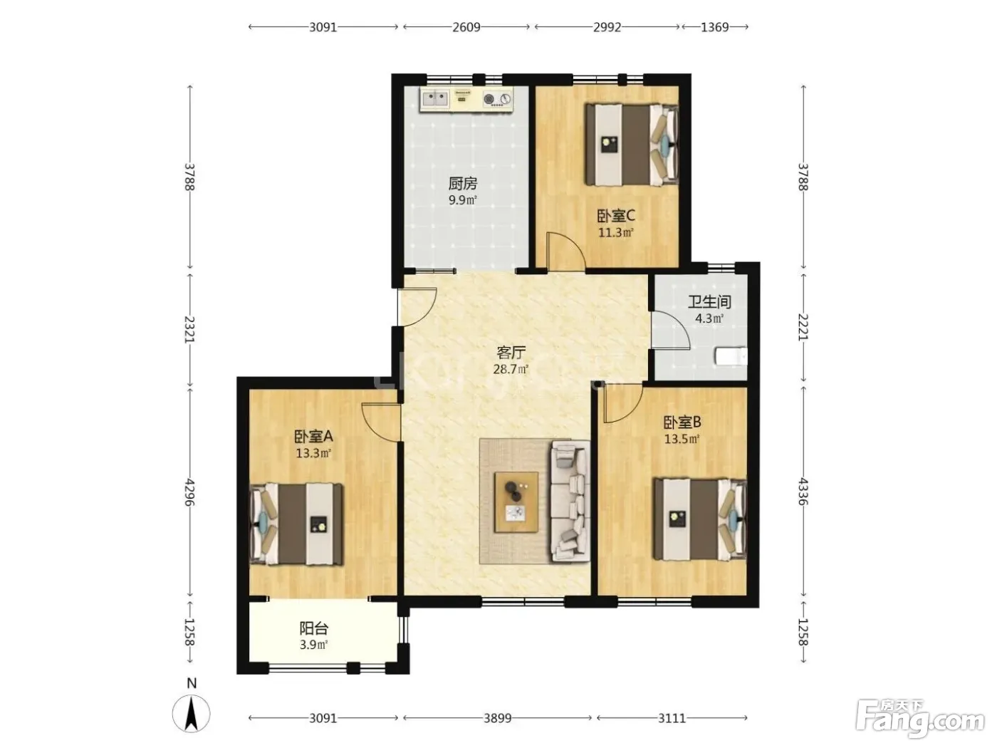 金都花园 3室1厅 南 北