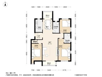 宝翠花都听景园 3室2厅 南 北