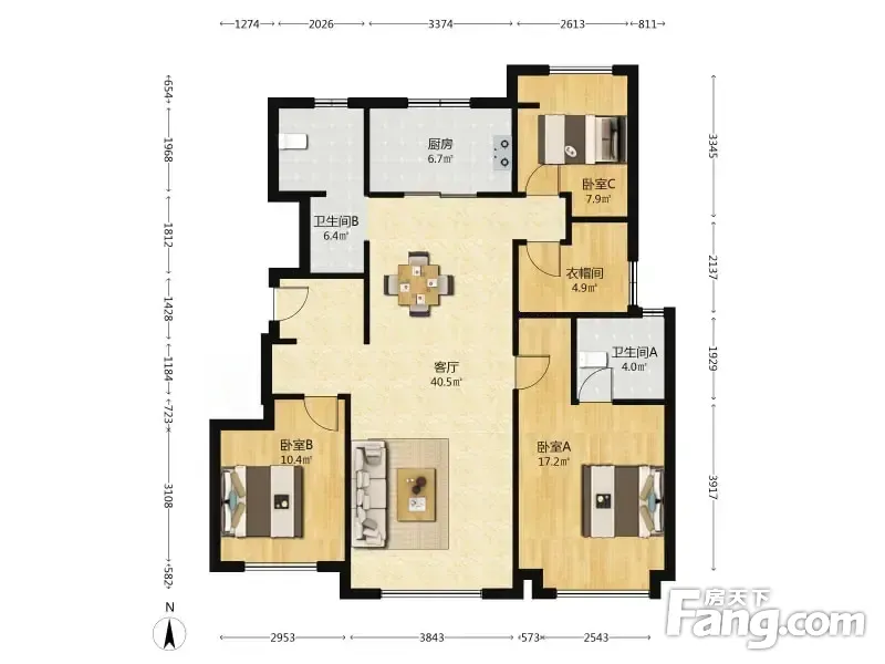 户型齐全,主打南北通透,全明格局三居