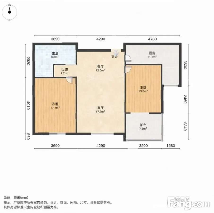 户型齐全,主打客厅朝南,双阳台,主卧朝南二居