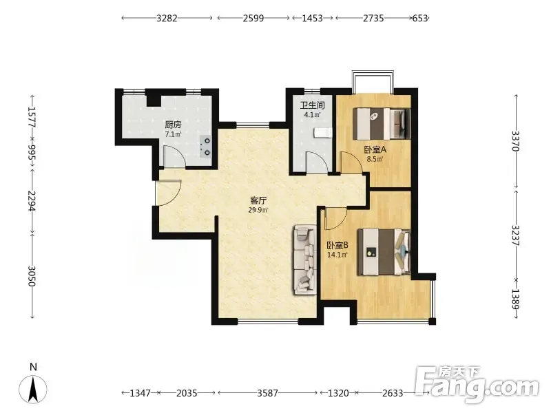 户型齐全,主打户型方正,明卫,客厅朝南,主卧朝南二居