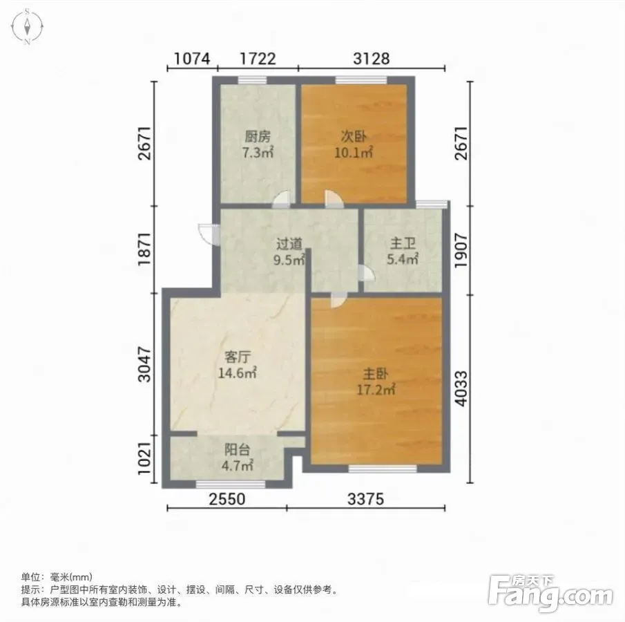 户型齐全,主打户型方正,明厨,主卧朝南二居