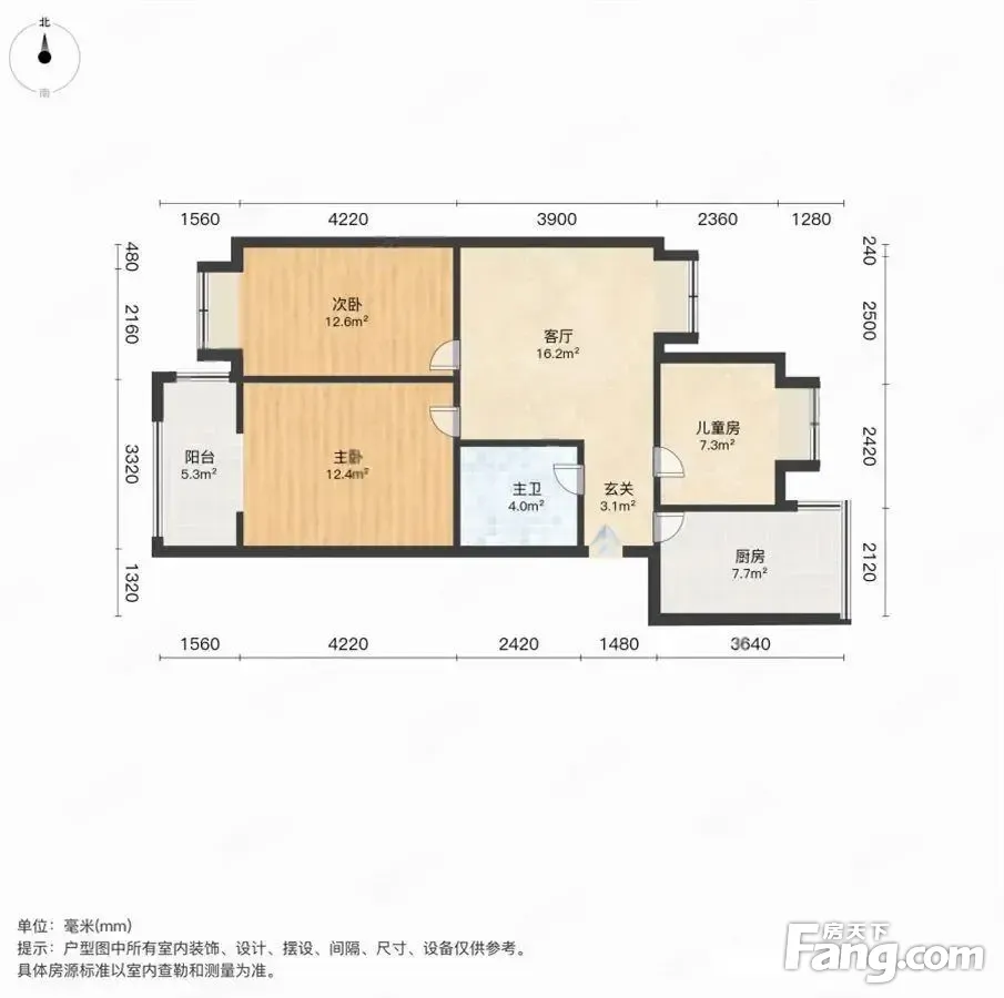 户型齐全,主打明厨,客厅朝南二居