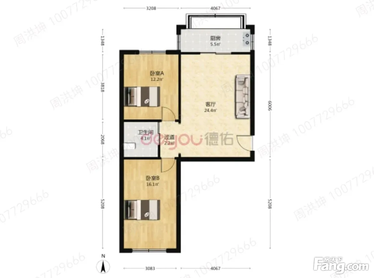 户型齐全,主打户型方正,明厨,客厅朝南,主卧朝南二居