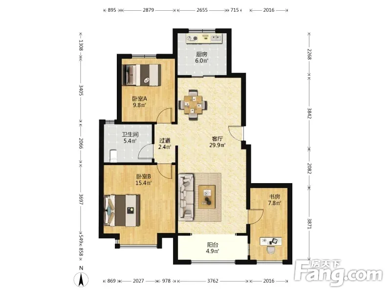 户型齐全,主打户型方正,明卫,明厨,双卧朝南,主卧朝南三居