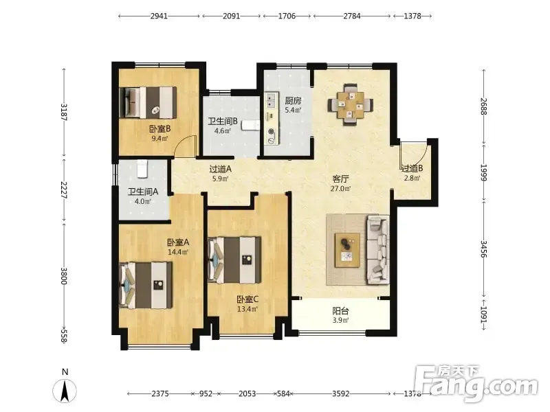 户型齐全,主打南北通透,全明格局,户型方正三居