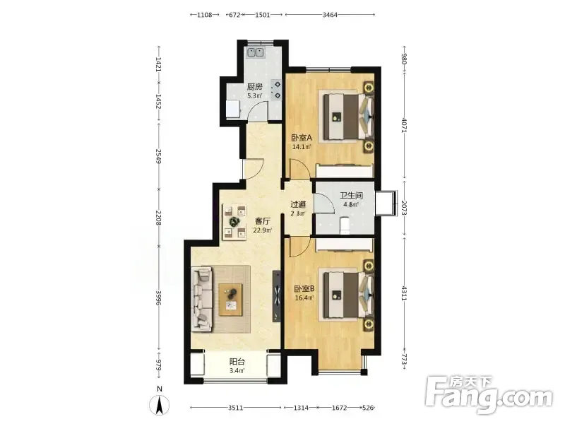 盛世家园 2室2厅 南 北
