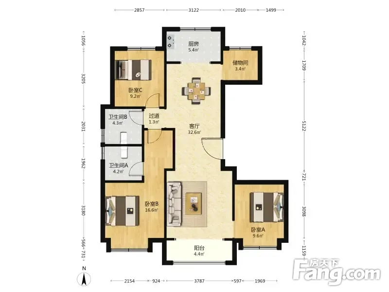 户型齐全,主打南北通透,全明格局,户型方正三居