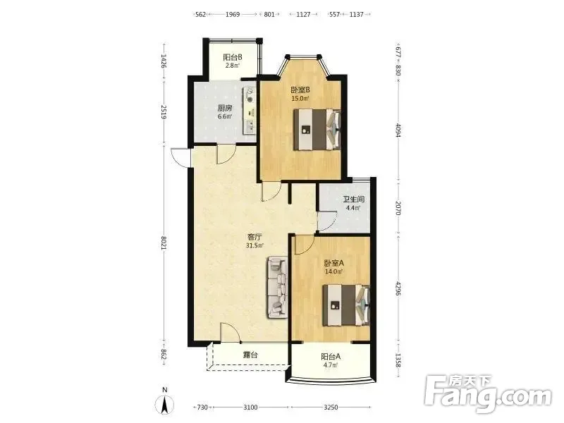 户型齐全,主打户型方正,客厅朝南,明卫,双卧朝南,主卧朝南三居