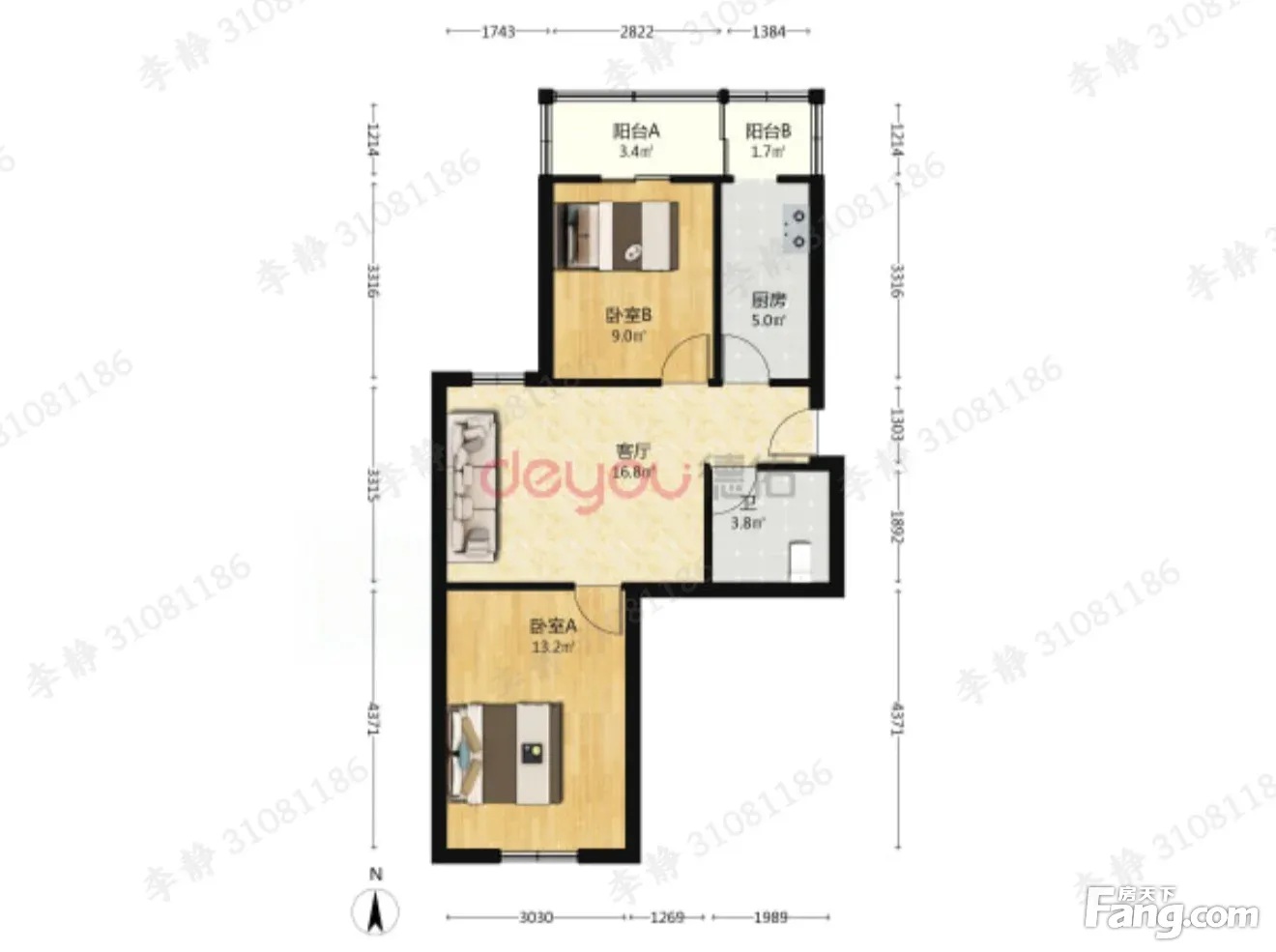 户型齐全,主打双阳台,双卧朝南,主卧朝南二居