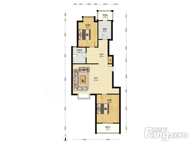 英俊名邸2室1厅南北