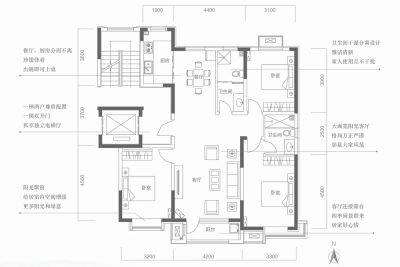 户型齐全,主打户型方正,采光充足三居