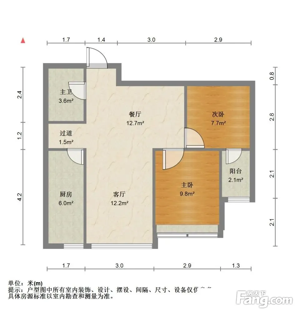 户型齐全,主打南北通透,客厅朝南,主卧朝南二居