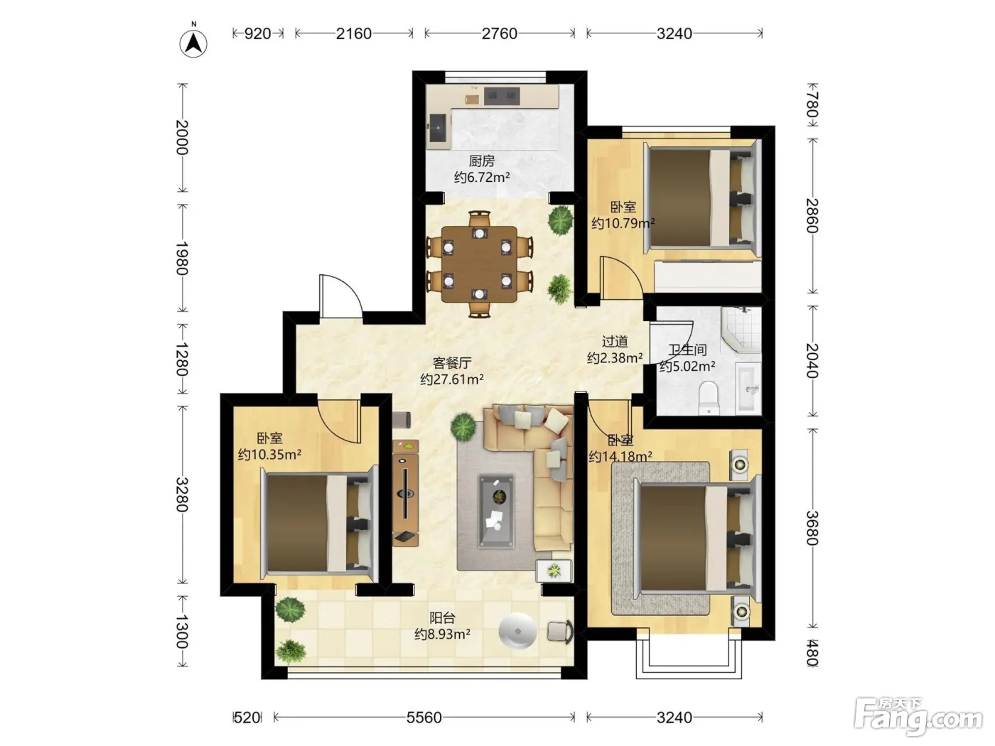 户型齐全,主打南北通透,全明格局三居