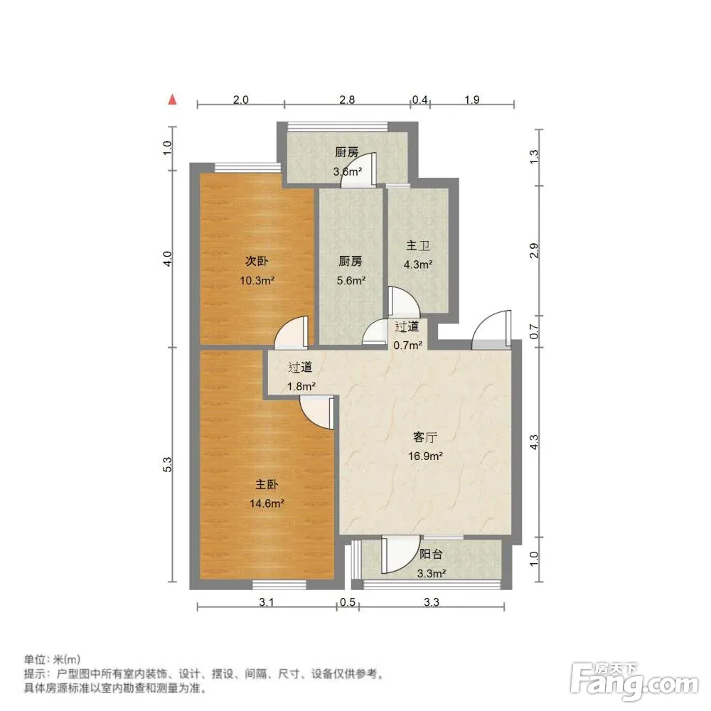 户型齐全,主打明卫,明厨,客厅朝南,主卧朝南二居