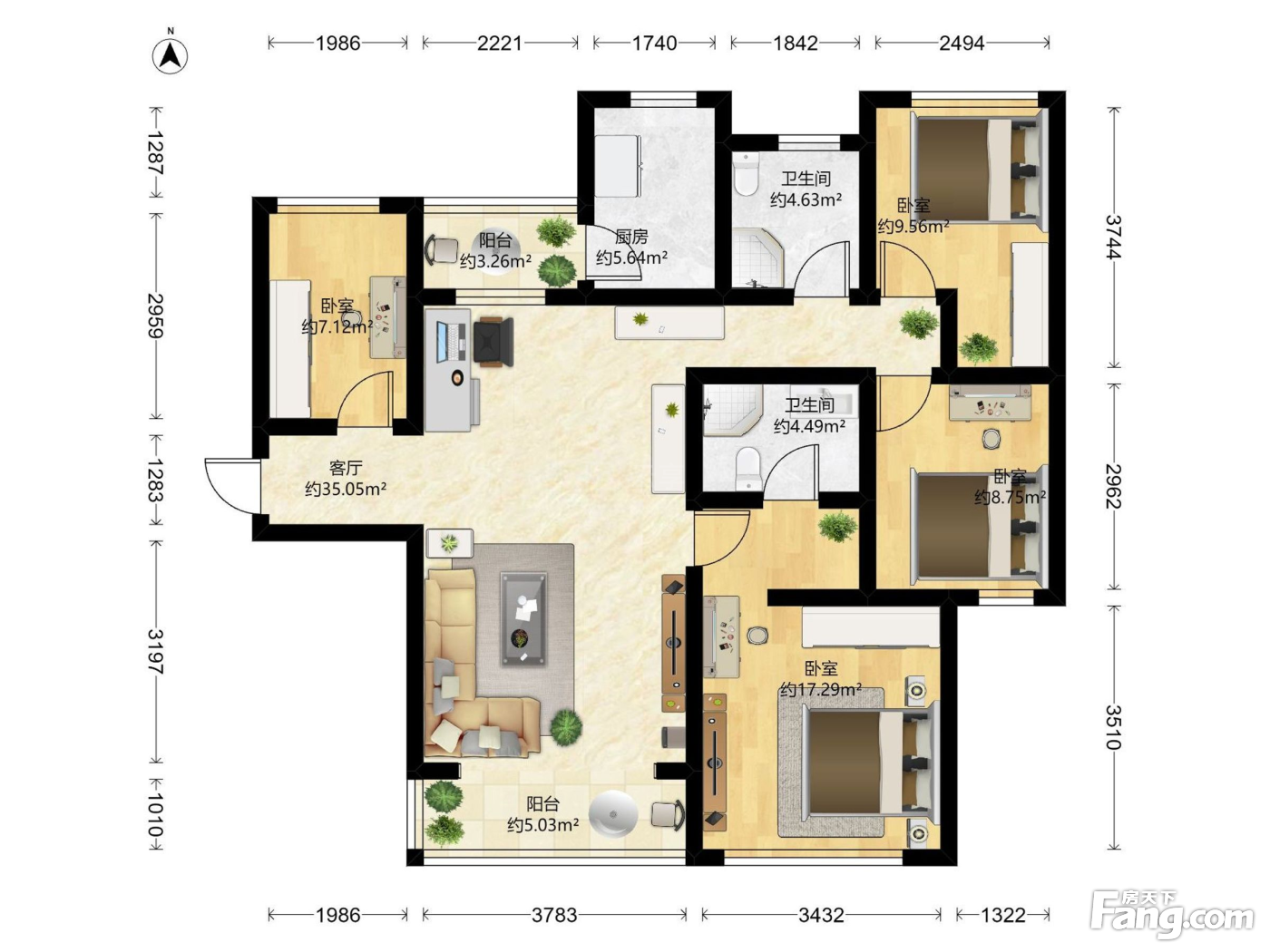 户型齐全,主打明厨,明卫,双阳台,主卧朝南三居