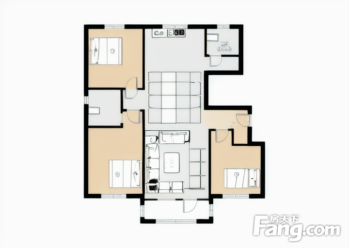 户型齐全,主打户型方正,明厨,客厅朝南,双卧朝南三居