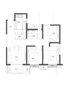 户型齐全,主打户型方正,采光充足三居