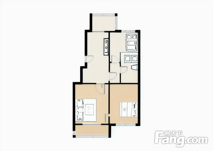 户型齐全,主打户型方正,明厨,客厅朝南,主卧朝南二居