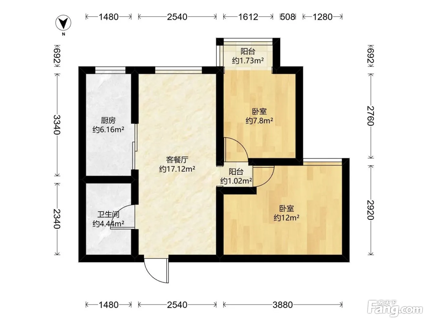 户型齐全,主打明厨,客厅朝南二居