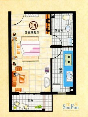 户型齐全,主打厨卫不对门,户型方正,客厅朝南一居