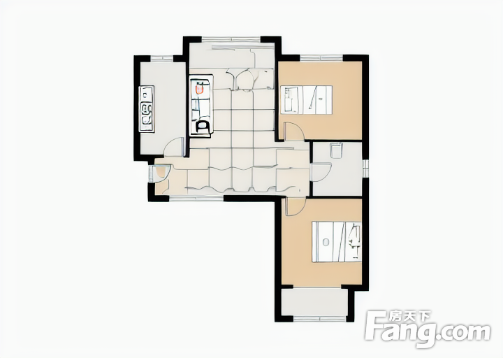户型齐全,主打户型方正,明厨,客厅朝南,主卧朝南二居