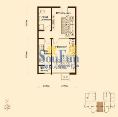 金洋御景 1室1厅 南