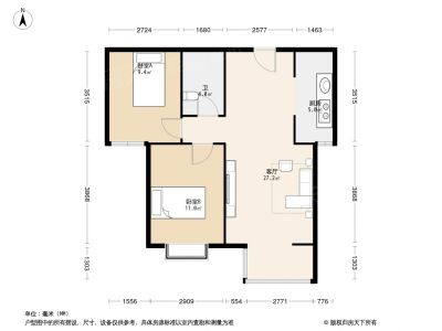 户型齐全,主打明厨,客厅朝南,双卧朝南二居