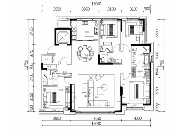 户型齐全,主打户型方正,采光充足四居