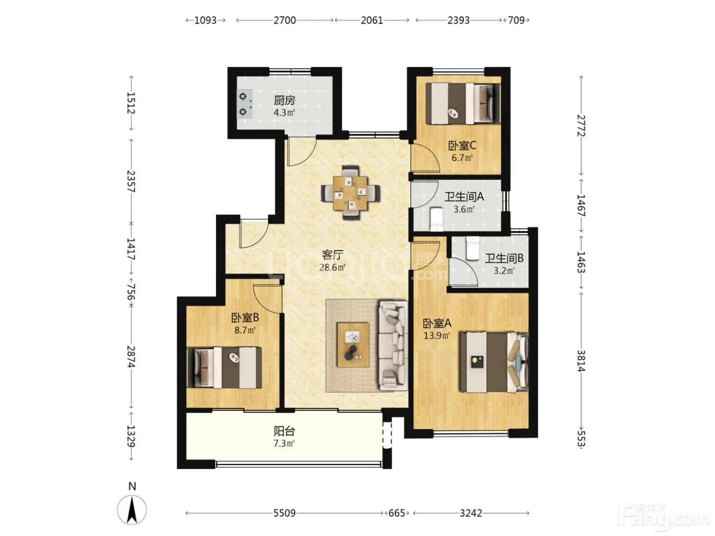 3室1厅2卫